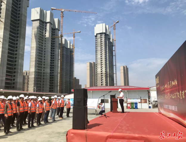 6月8日上午,位于經(jīng)開(kāi)大道旁的車都?春臺(tái)里項(xiàng)目工地80余名一線建設(shè)者在辦公區(qū)上了一堂“微黨課”。即日起,黨史教育巡回展將在武漢建工集團(tuán)市內(nèi)12個(gè)重點(diǎn)工地巡回展出,持續(xù)至10月。